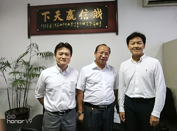 廣州艾若多自動化控制設備有限公司吳經(jīng)理(中)跟日本美和鎖業(yè)株式會社杉田先生(左).石田先生(右)合影留念: