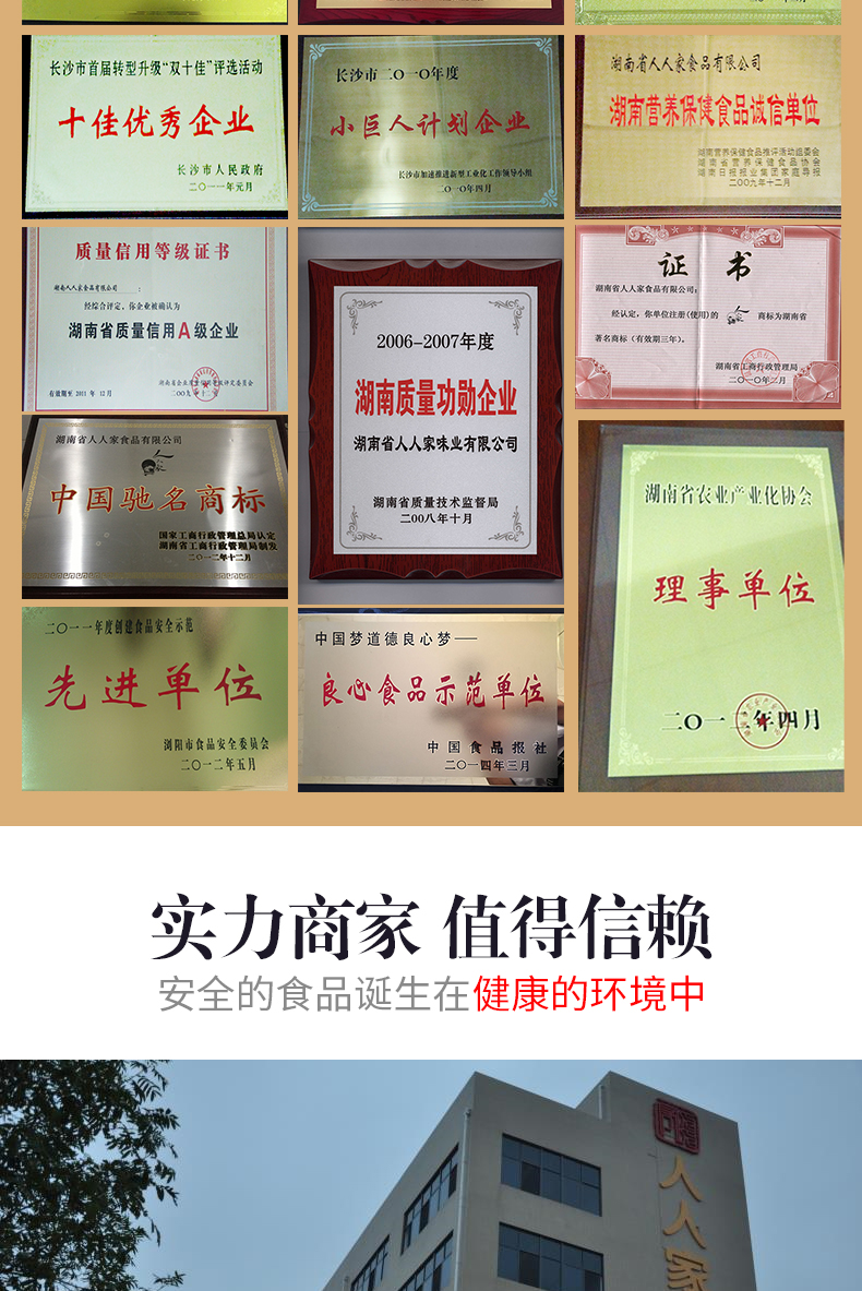 人人家食品公司產品共有8大系列150余個品種,產品涵蓋了:麥片、沙琪瑪、豆奶粉、核桃粉、黑芝麻糊、藕粉、牛肉干、蓮子糊等“人人家”知名產品。其中“人人家”營養(yǎng)麥片榮獲第二屆中國國際食品博覽會“國際名牌食品”稱號,“人人家”沙琪瑪榮獲2007年第二屆中國(長沙)國際食品博覽會金獎,所有產品在同行業(yè)中率先通過了食品安全(SC)認證。產品行銷網(wǎng)絡遍及全國,在食品行業(yè)影響極大,深受廣大消費者的喜愛。自創(chuàng)業(yè)以來,人人家以迅猛的速度與奇跡在不斷的發(fā)展,2007年全年,人人家的主營業(yè)務較去年同期增長26%。去年區(qū)域地區(qū)的銷售均為同行業(yè)第一。